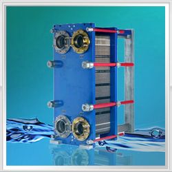 可拆式板式換熱器是由一組波紋金屬板組成,板上有四個角孔,供傳熱的兩種流體通過。金屬板片安裝在一個側面有固定板和活動壓緊板的框架內,并用夾緊螺栓夾緊。板片上裝有密封墊片,將流體通道密封。并且引導流體交替地流至各自的通道內,形成熱交換。流體的流量、物理性質、壓力降和溫度差決定了板片的數量和尺寸。波紋板片不僅提高了湍流程度,并且形成許多支承點,足以承受介質間的壓力差。金屬板和活動壓緊板懸掛在上導桿,并由下導桿定位,而桿端則固定在支撐板上,由于具備性能,省空間,省能源,維護簡單等許多優點。