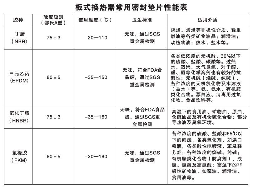 雷曼換熱器墊片材質